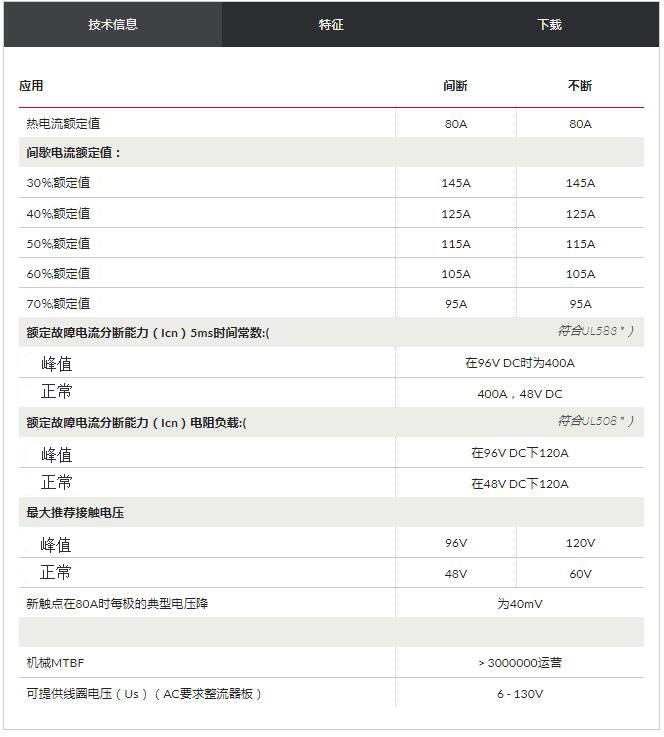 不间断电流 - 无或不频繁的负载切换要求(保持较低的接触电阻)。