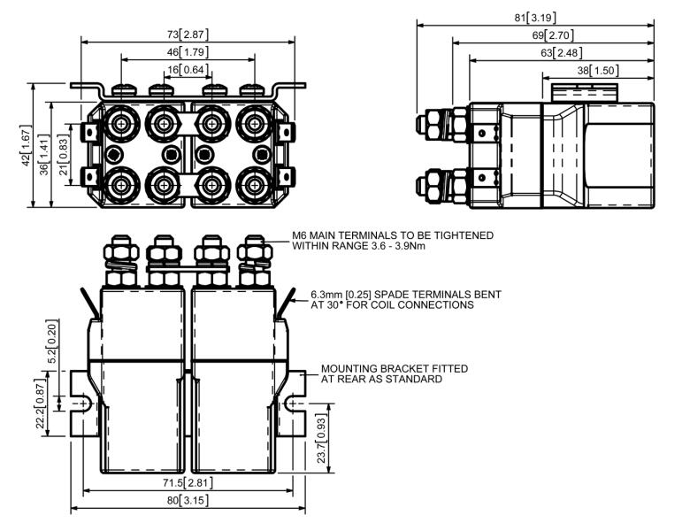 SW688P采用双极双断主触头,银合金尖端,耐焊接,耐磨,导电性能优良。SW688P具有M6螺柱主端子和6.3mm铲形线圈连接。使用提供的支架安装,安装可以是水平或垂直,垂直时M6接触螺柱应指向上方。如果要求是向下定向,我们可以调整接触器以补偿这一点。