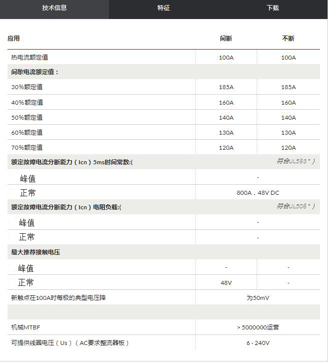 SW95专为直流负载而设计,包括用于电动车辆(如工业卡车)以及电信和配电应用的电机。 针对中断和不间断负载而开发的 SW95适用于开关电阻,电容和电感负载 。