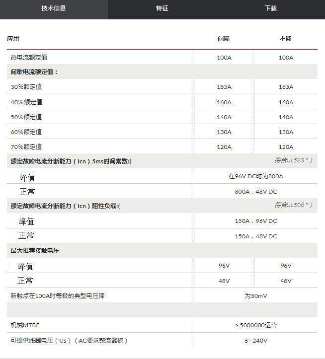 SW96专为直流负载而设计,包括用于电动车辆(如工业卡车)以及电信和配电应用的电机。 针对中断和不间断负载而开发的 SW96适用于开关电阻,电容和电感负载 。